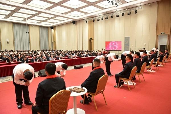 在庄严肃穆的“拜师立约”仪式中,一线业务的新晋师徒代表按照古礼,完成净手、正衣、敬茶、授巾、共誓等环节。一杯清茶,一份誓词,不仅定格了师徒携手前行的初心,更彰显了双汇人对经验分享与文化传承的郑重承诺。